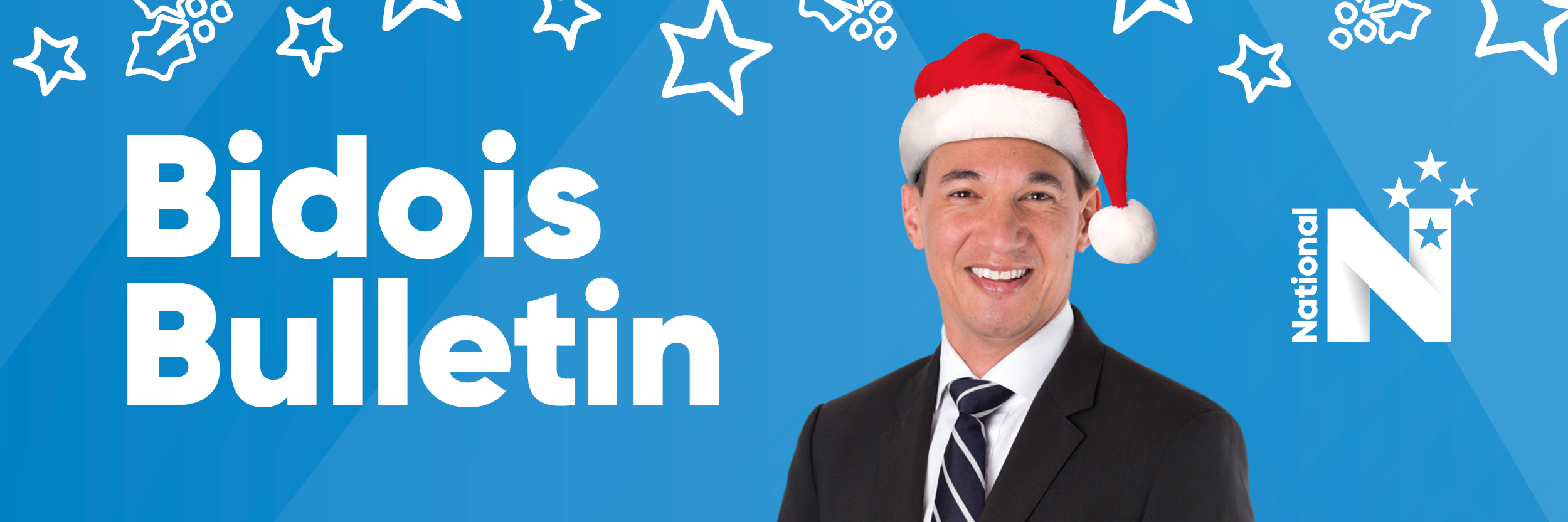 A reminder that my office will be closed over the Christmas break from December 20th – January 8th. I'm available at dan.bidois@national.org.nz if you have any urgent issues.